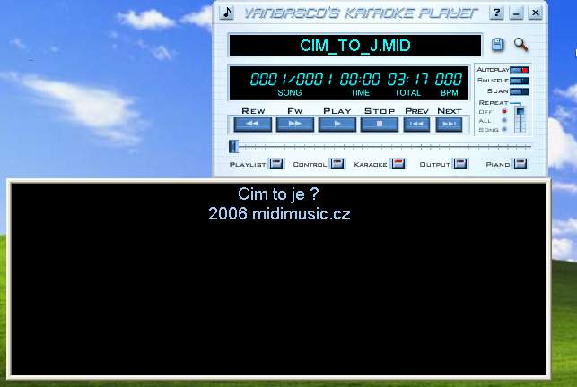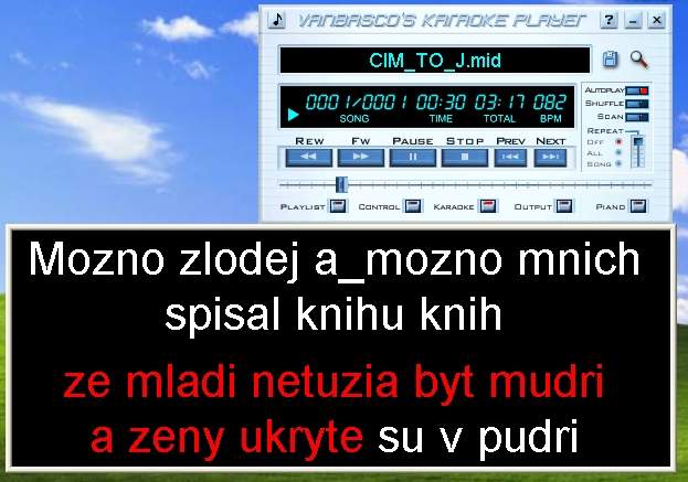 Ak si spustíte súbor v programe VanBasco´s Karaoke Player, uvidíte na miesto textu len čiernu plochu, prípadne ešte nejaké informácie, ktoré tam dal autor alebo vy.