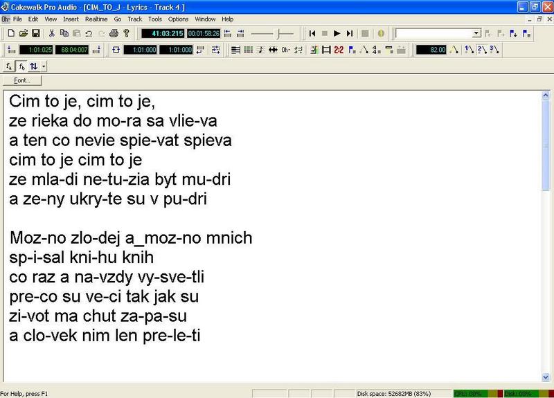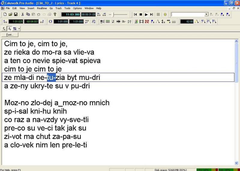 Text vložíte cez panel View-Lyrics. Samozrejme si označte TRACK, v ktorom je spevová linka.