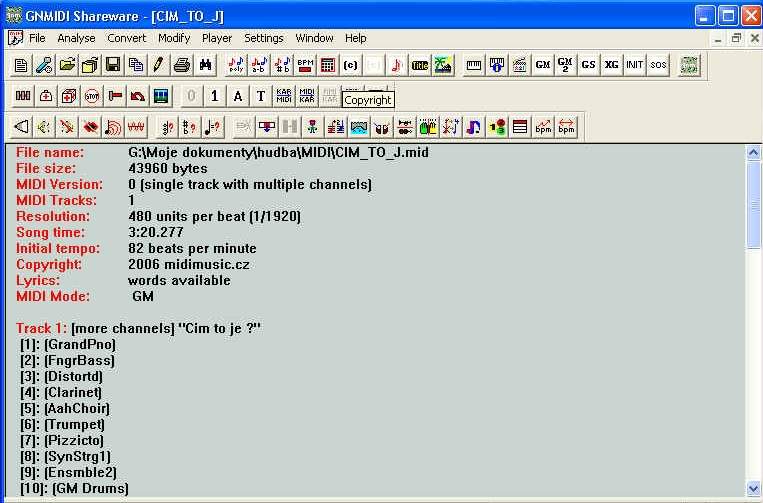 Súbor otvorte v programe gnMIDI.