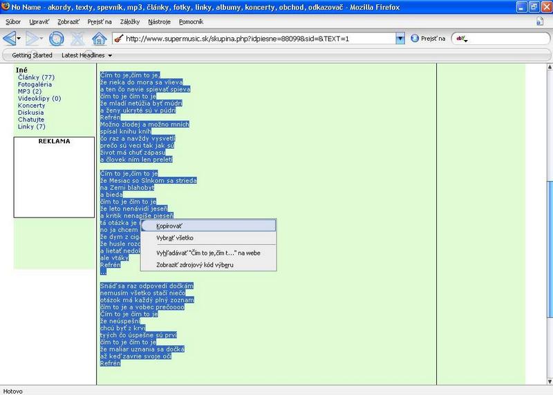Tento bod môžete preskočiť, ale ušetrí vám veľa času. Ak nemáte text v elektronickej podobe, nájdite si ho na nete, najlepšou stránkou pre České a Slovenské texty je SUPERMUSIC.SK. Nájdený text si vložte do schránky a uložte si ho ako textovy súbor *.txt alebo ho rovno vložte do CAKEWALKu.
